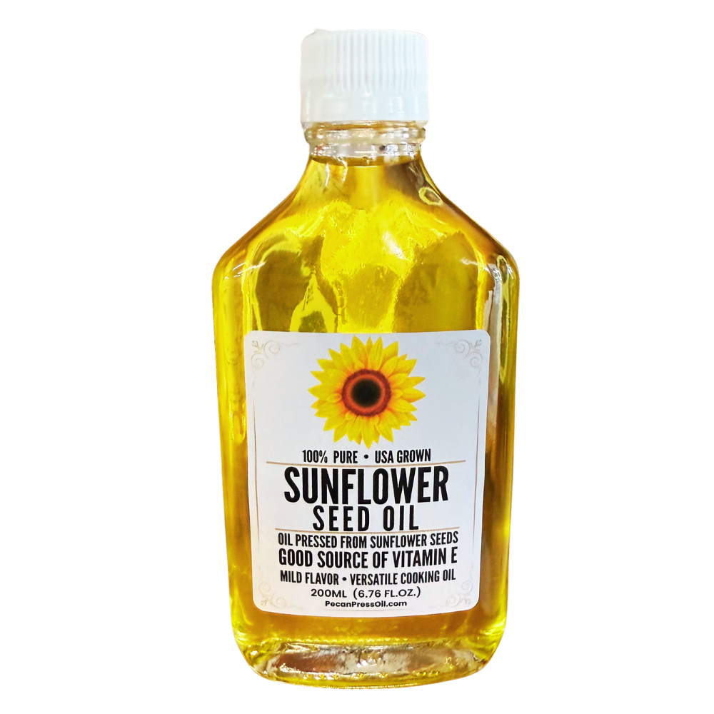 The Pecan Press Sunflower Seed Oil – Cold-Pressed and Bottled in Powell, Texas.